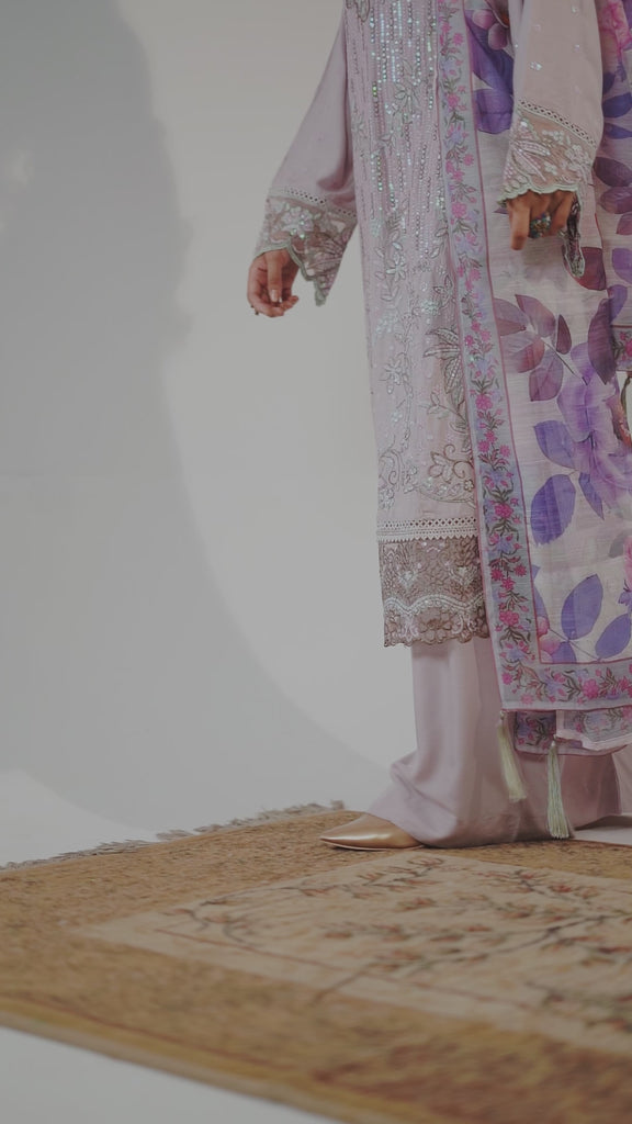 Spark in the elegance of this unbeatable pastel readymade dress featuring luxury linen fabric. The dress features a V neckline with intricate embroidery that makes you look graceful. Threadwork on the shirt’s front and sleeves epitomises sophistication. The unique tissue patch with cutwork on sleeves exudes stylish elegance that transcends the test of time. The attire showcases your refine taste and uniqueness. Pair this dress with a chiffon printed dupatta and linen bellbottoms for a complete classy look.